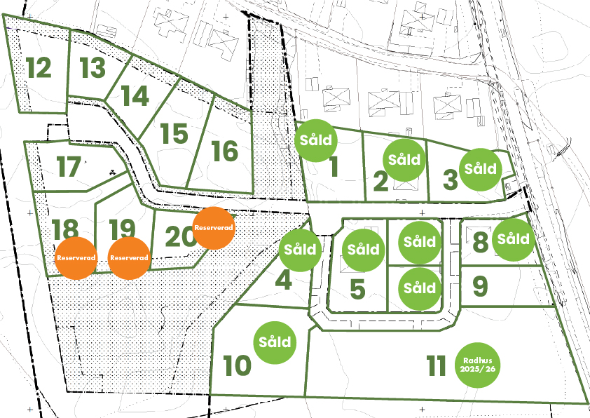 Försäljningen av tomterna har startat. Se Hemnet
